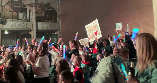 Schnell wuchs unsere Gruppe an und mit ihr auch die Ideen. Es wurden T-Shirts mit Schullogo gedruckt, viele Karten gekauft und das "Auffallen" mit viel Beleuchtung wurde ebenfalls geplant. Am Ende bestand unsere Gruppe aus ca. 65 Personen, darunter die Schulleitung, zahlreiche Kolleginnen und Kollegen und weitere Bekannte. Alle gaben ihr Bestes, so dass Herr Ritzenhoff den begehrten "Vocal Hero" Preis mit nach Hause nehmen und wir vom Team der Grundschule Karlstraße den Preis für den besten Fanclub gewinnen konnten.